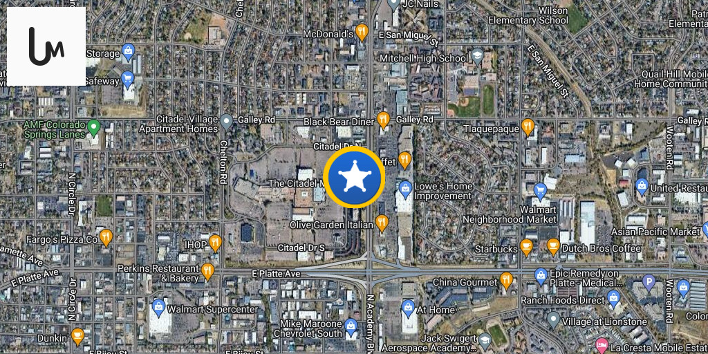 Colorado Springs police are searching for three suspects who they say fired multiple shots at security officers after they were caught burglarizing a closed business near the Citadel Mall just after midnight on Tuesday